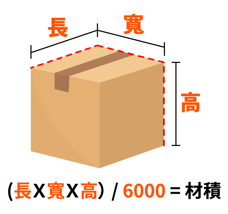 長 (cm) × 寬 (cm) × 高 (cm) ÷ 6000 = 材積重量